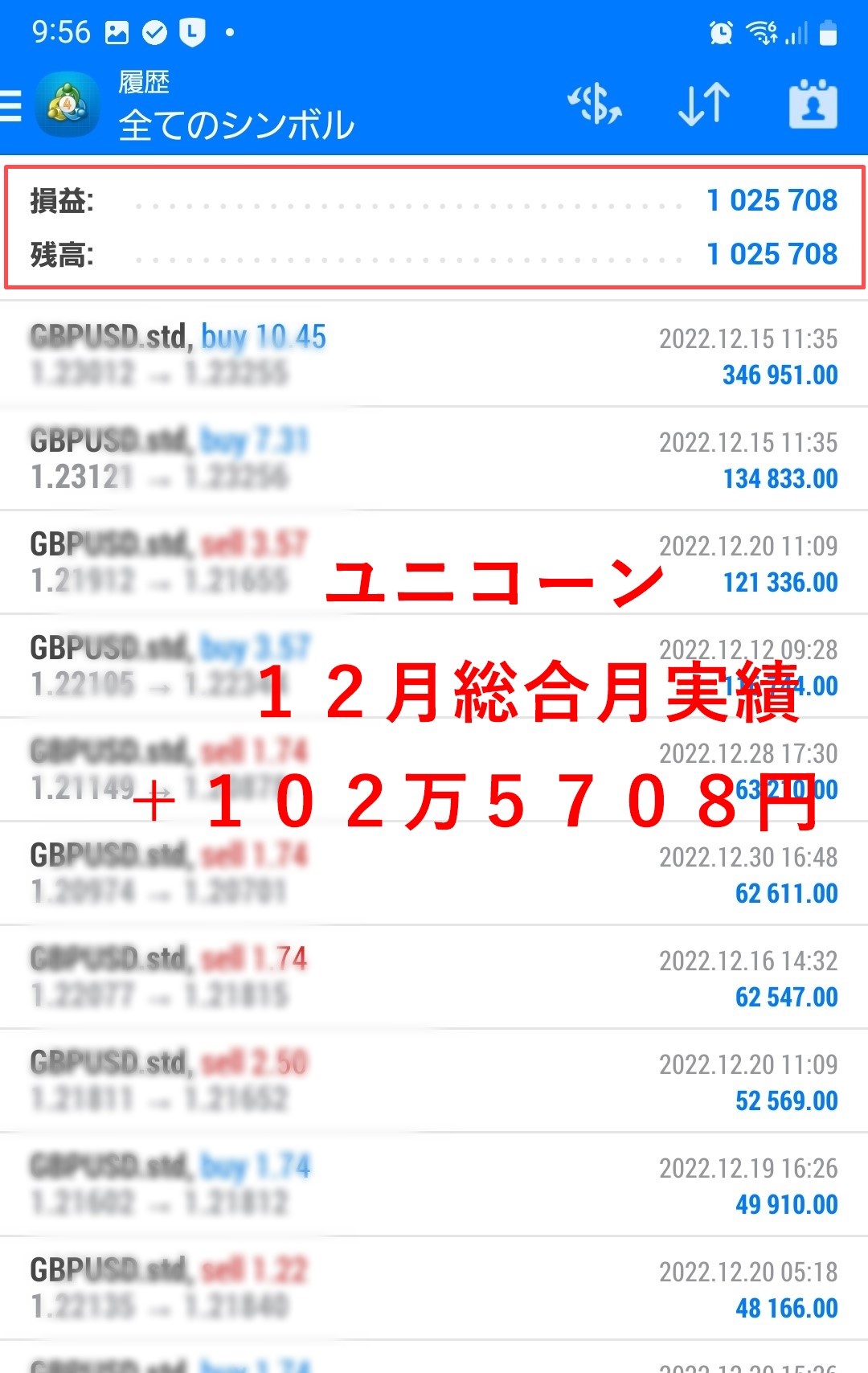 トレンドフォロー型システムで爆益系EAのUnicorn(ユニコーン)がリリースされました。驚異の月利120%で利益に目指して一点集中の動きをします。